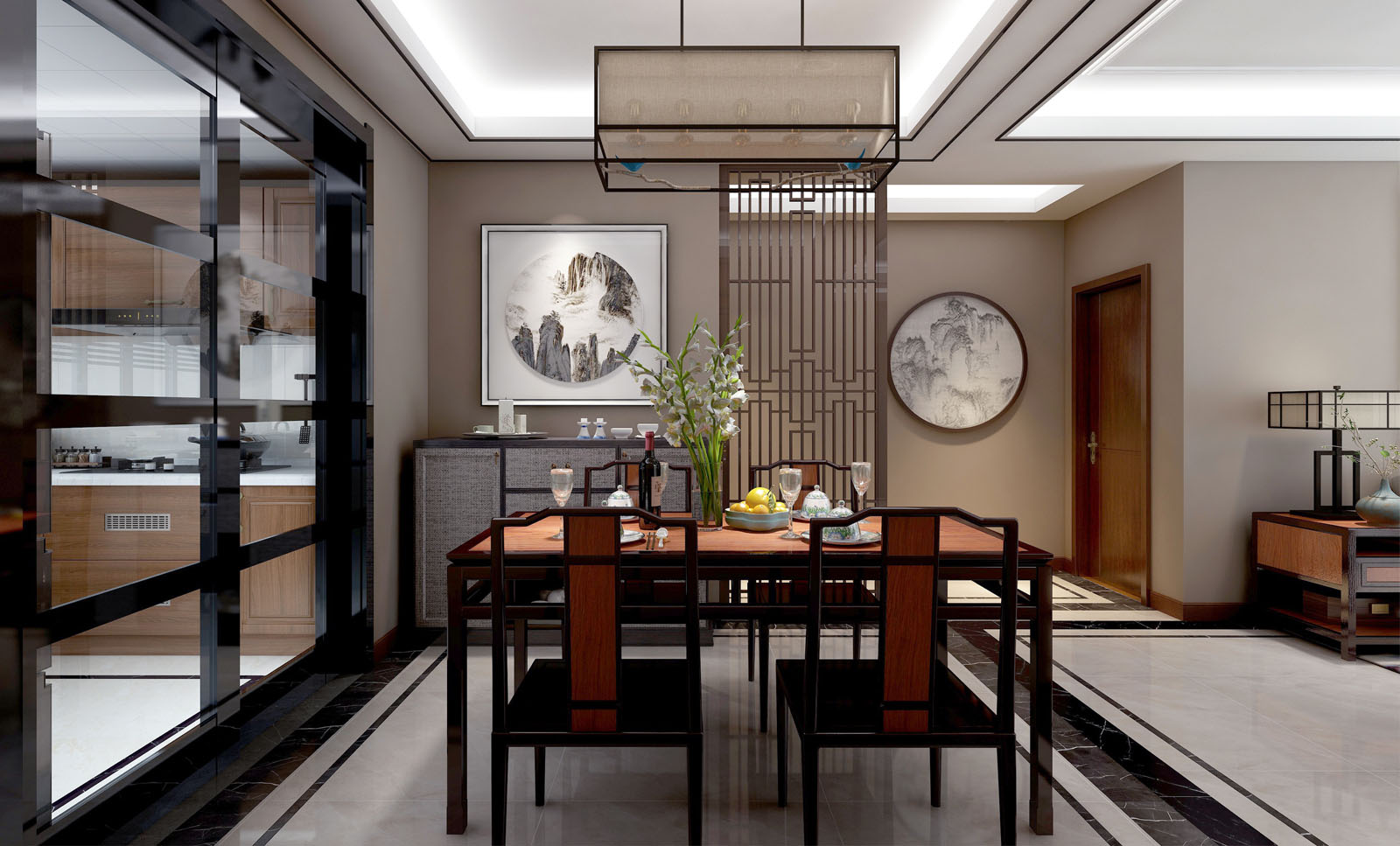 中国人对于幸福的定义,或在一张餐桌上,或在沙发的围合里。把和气团圆的寓意贯通到设计里,如精神般的存在。